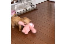初日から夜泣きもせず、よく食べよく寝る元気いっぱいな女の子です。割と上手にトイレシートを活用してくれて、とてもお利口さんです。家族全員メロメロで、常にケージの中が気になる、ワンちゃん中心の生活になっています。