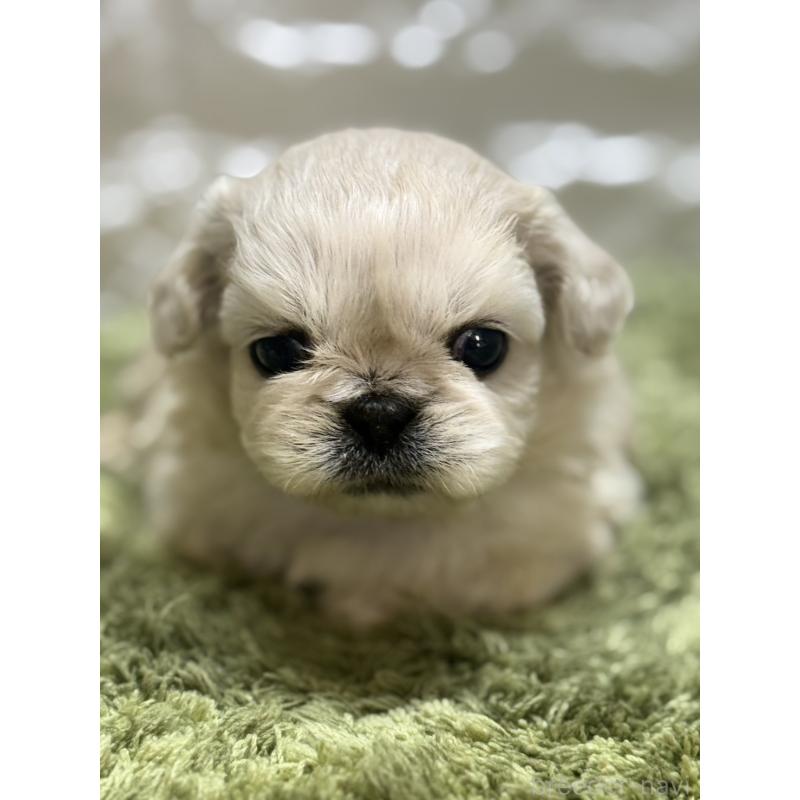 ペキニーズは中国が原産国の犬種。鼻ぺちゃにつぶらな瞳がかわいらしく、気まぐれで猫のような性格といわれています。成犬時の大きさはオスの体重が5kg以下、メスは5.4kg以下が標準とされています。