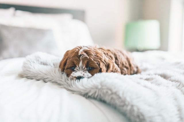 特に子犬の場合、ふわふわとした居心地の良い布団の上は本能的に排泄したくなる場所。布団の上でオシッコをさせないよう、トイレトレーニングが終わってから一緒に寝るのが安心ですね。