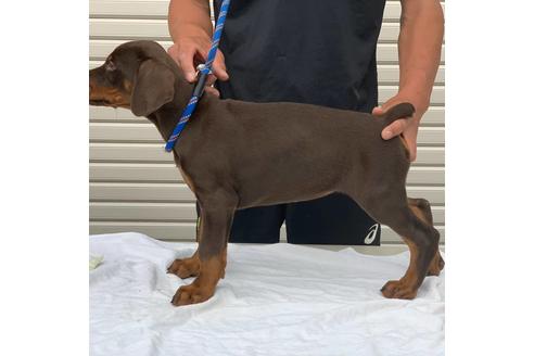 ブラウンタンの可愛いドーベルマンです。