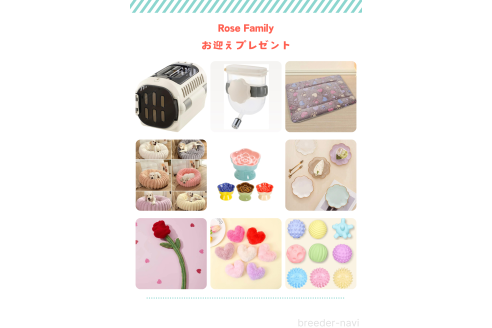 ワクチン、マイクロチップ、血統書、Rose Familyお迎えセット(プレゼント)が含まれます。