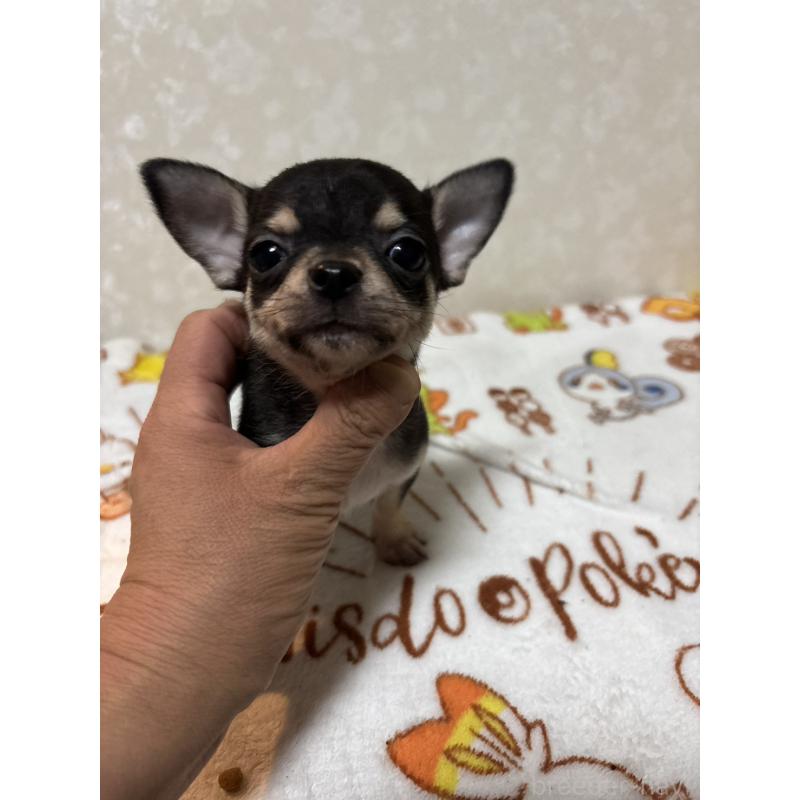 可愛らしい男の子です🐶💕 キリッとしたブラック&タンのカラーと、スムースコートならではのツヤツヤな毛並みが魅力的なチワワちゃんです✨✨ チワワらしい大きな立ち耳と、こぼれ落ちそうなほどクリクリとした瞳が印象的🎀 まだ幼いながらもしっかりと立つ姿からは、この犬種特有の勇敢さと賢さが感じられます! スムースコートはお手入れがしやすく、ワンちゃんと肌と肌で触れ合う実感をより強く持てるのが魅力です✨✨ 最高のパートナーになってくれること間違いありません🤗 少しでも気になる方がいらっしゃいましたら、お気軽にお問い合わせくださいね。 ※見学の際、当日でのお迎えをご検討されている場合はお問い合わせ時に必ずご相談ください。 【子犬のお引渡しについて】 子犬のお引き渡し時期は法令により生後57日以降ですが、当犬舎では67日以降でのお引渡しとなっております。 ※個体差もあり、60日前後でワクチン接種して1週間後にお引き渡しをしております。 お待ちしております(^^)
