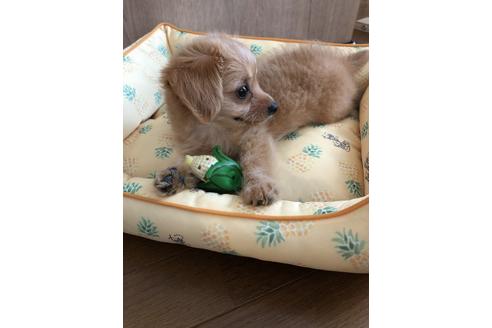 犬を飼いたいと思ってから、トイプードルかミックスで探していました。お店を回ったりネットを見たりしている中で、毛色やお顔がとてもかわいく、「この仔だ!」とピンと来ました。オンライン見学で実際の様子を見ることができたので、安心して決めることができました。