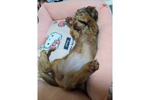 ダックス系の犬種でかつミックス犬を探していて見学させて頂いた時に抱っこした時、かなり大人しかったので決めさせて頂きました。